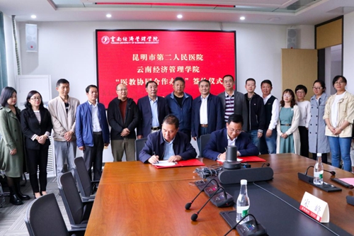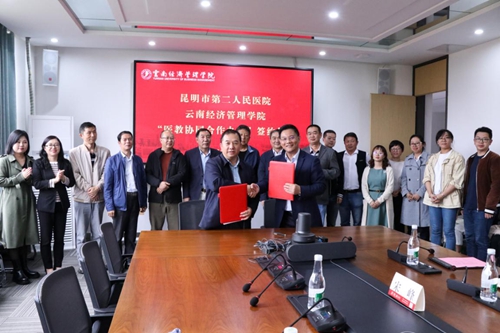 云南经济管理学院校长侯德东与昆明市第二人民医院院长毕卫红签署协议