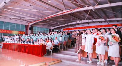 授帽结束后,由护理系主任宋峰带领护理专业毕业生庄严宣誓。